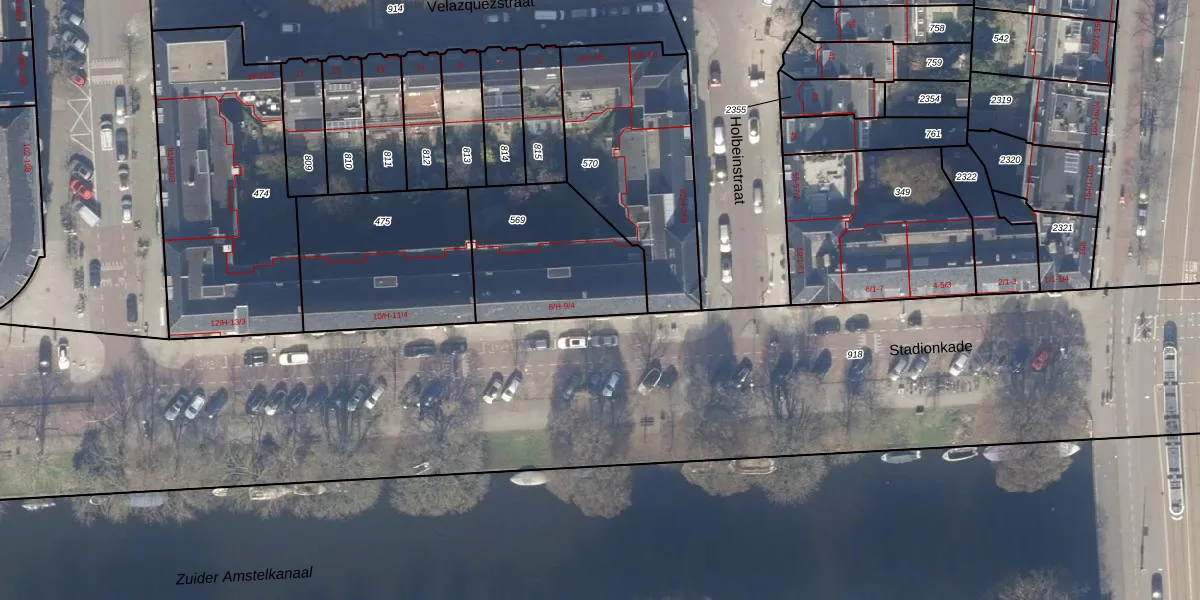 Het perceel waarop Stadionkade 8-4 staat heeft een oppervlakte van 569 m². Dit is een groot perceel. De perceeloppervlakte wordt geregistreerd door het Kadaster. Gedetailleerde informatie over de maten van dit perceel kunt u vinden in het rapport Kadastrale kaart met maatvoering van Stadionkade 8-4.