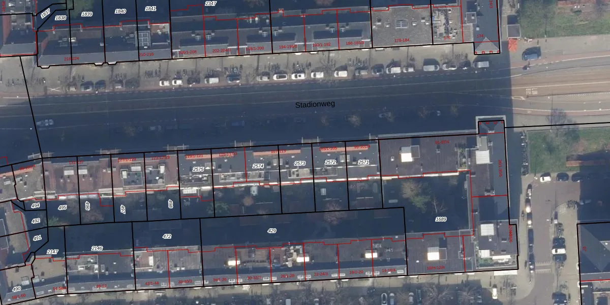 Stadionweg 107 is gelegen op kadastraal perceel ASD23AB2573. Deze kadastrale aanduiding is uniek en wordt gebruikt door het Kadaster om eigendomsrechten en andere zakelijke rechten vast te leggen. Het perceel maakt onderdeel uit van de kadastrale gemeente Amsterdam.