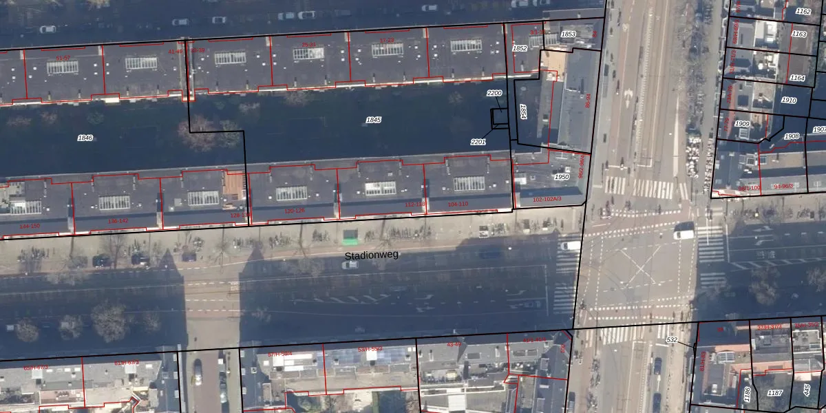 Stadionweg 112 is gelegen op kadastraal perceel ASD22Z1845. Deze kadastrale aanduiding is uniek en wordt gebruikt door het Kadaster om eigendomsrechten en andere zakelijke rechten vast te leggen. Het perceel maakt onderdeel uit van de kadastrale gemeente Amsterdam.