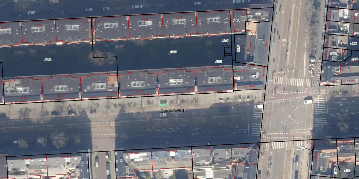Het perceel waarop Stadionweg 114-3 staat heeft een oppervlakte van 3207 m². Dit is een zeer groot perceel. De perceeloppervlakte wordt geregistreerd door het Kadaster. Gedetailleerde informatie over de maten van dit perceel kunt u vinden in het rapport Kadastrale kaart met maatvoering van Stadionweg 114-3.
