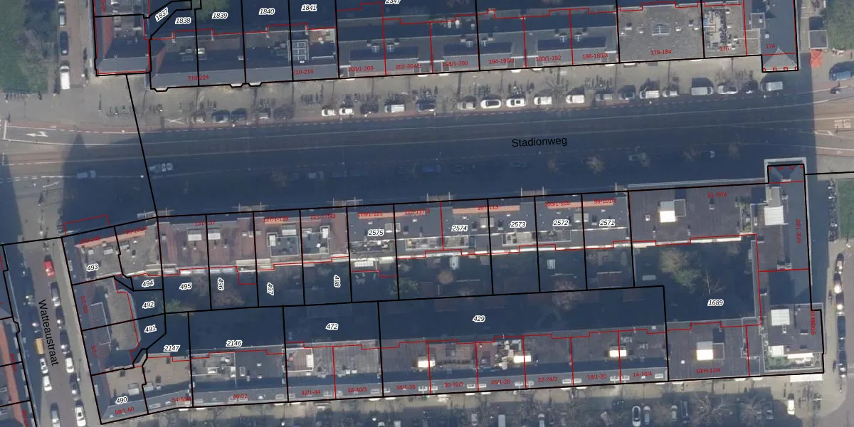 Het perceel waarop Stadionweg 115 staat heeft een oppervlakte van 496 m². Dit is een groot perceel. De perceeloppervlakte wordt geregistreerd door het Kadaster. Gedetailleerde informatie over de maten van dit perceel kunt u vinden in het rapport Kadastrale kaart met maatvoering van Stadionweg 115.