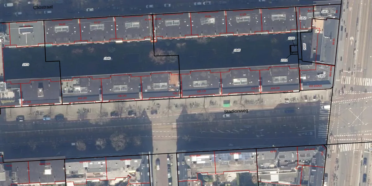 Het perceel waarop Stadionweg 126 staat heeft een oppervlakte van 3207 m². Dit is een zeer groot perceel. De perceeloppervlakte wordt geregistreerd door het Kadaster. Gedetailleerde informatie over de maten van dit perceel kunt u vinden in het rapport Kadastrale kaart met maatvoering van Stadionweg 126.