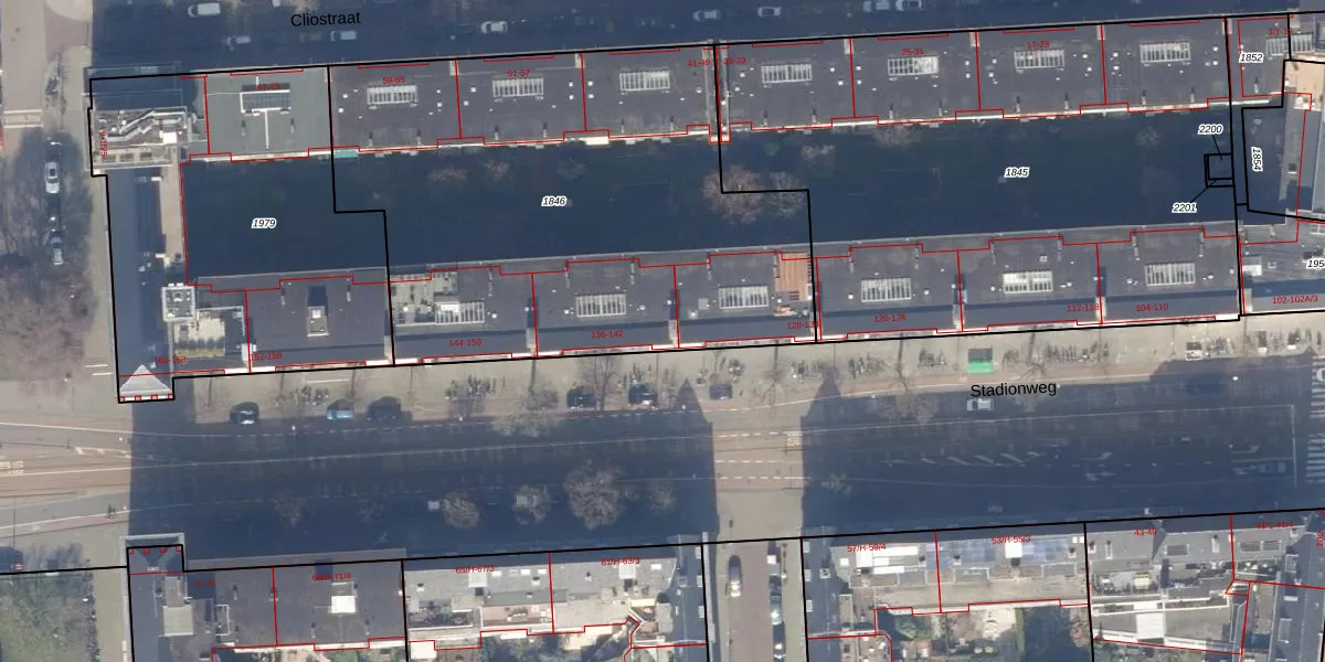 Het perceel waarop Stadionweg 136 staat heeft een oppervlakte van 2800 m². Dit is een zeer groot perceel. De perceeloppervlakte wordt geregistreerd door het Kadaster. Gedetailleerde informatie over de maten van dit perceel kunt u vinden in het rapport Kadastrale kaart met maatvoering van Stadionweg 136.