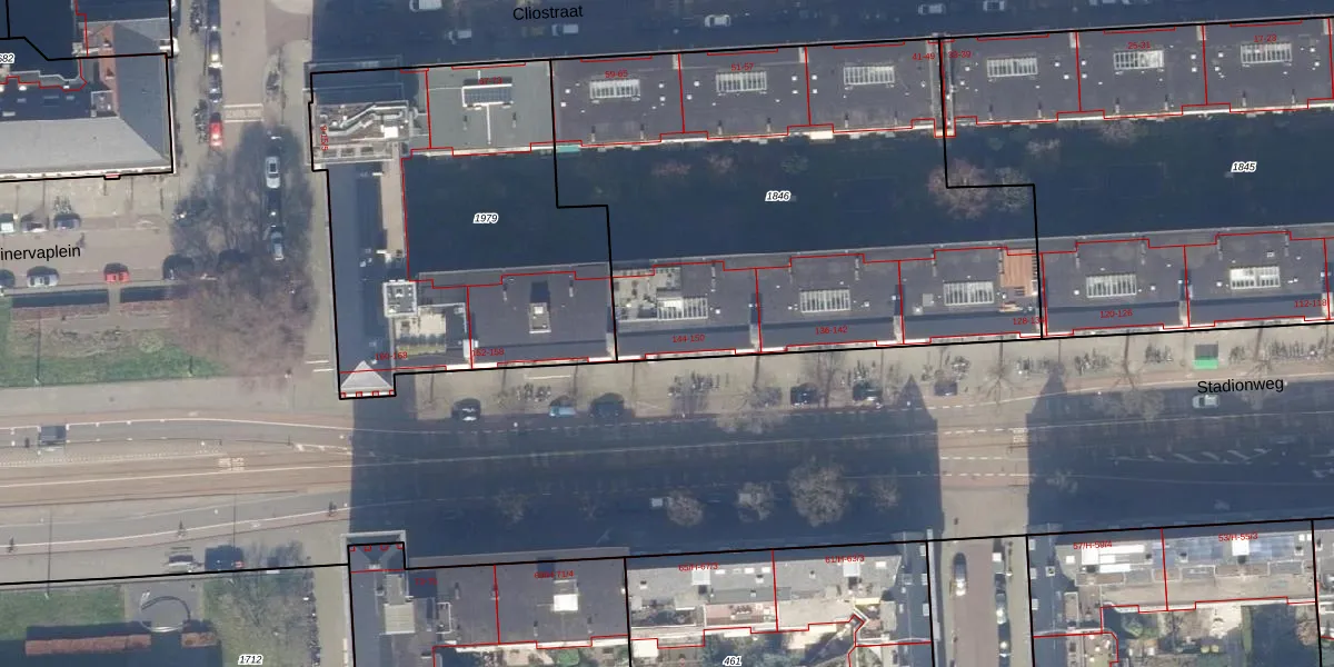 Het perceel waarop Stadionweg 148-4 staat heeft een oppervlakte van 2800 m². Dit is een zeer groot perceel. De perceeloppervlakte wordt geregistreerd door het Kadaster. Gedetailleerde informatie over de maten van dit perceel kunt u vinden in het rapport Kadastrale kaart met maatvoering van Stadionweg 148-4.