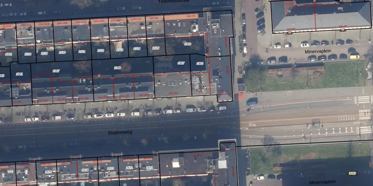 Het perceel waarop Stadionweg 178 staat heeft een oppervlakte van 442 m². Dit is een groot perceel. De perceeloppervlakte wordt geregistreerd door het Kadaster. Gedetailleerde informatie over de maten van dit perceel kunt u vinden in het rapport Kadastrale kaart met maatvoering van Stadionweg 178.