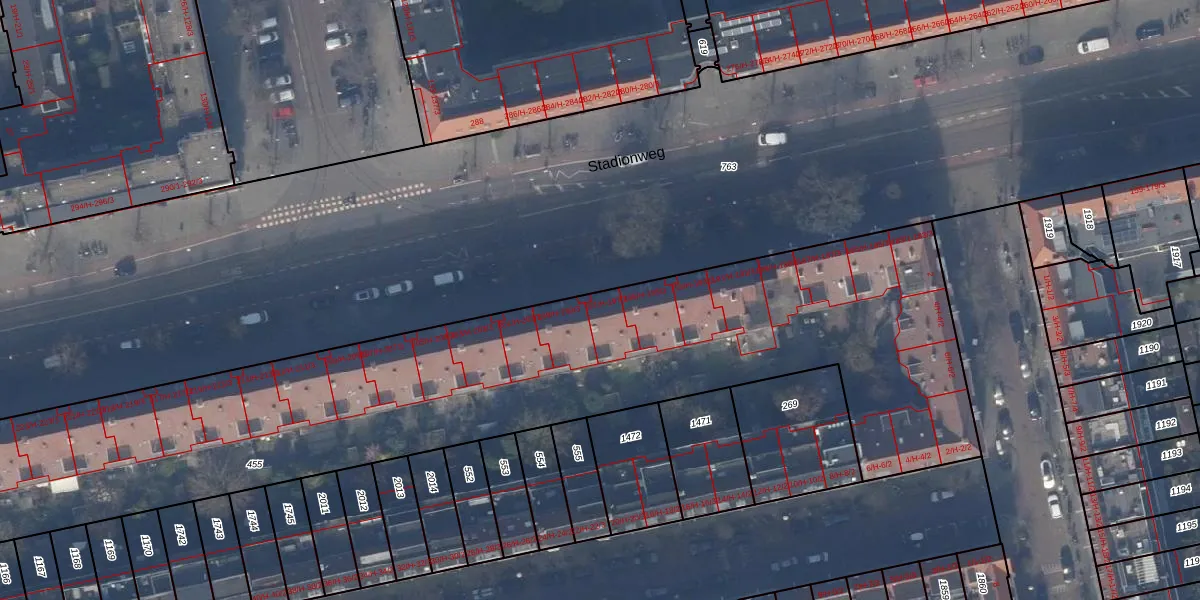 Stadionweg 197-1 is gelegen op kadastraal perceel ASD23AB455. Deze kadastrale aanduiding is uniek en wordt gebruikt door het Kadaster om eigendomsrechten en andere zakelijke rechten vast te leggen. Het perceel maakt onderdeel uit van de kadastrale gemeente Amsterdam.