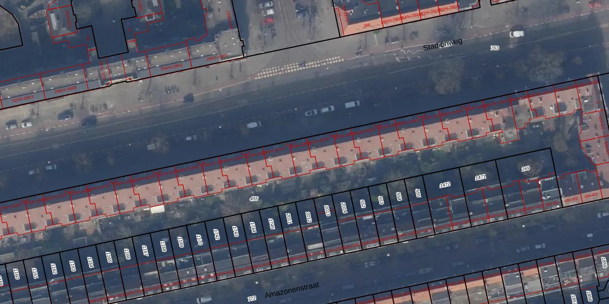 Het perceel waarop Stadionweg 209-H staat heeft een oppervlakte van 5407 m². Dit is een zeer groot perceel. De perceeloppervlakte wordt geregistreerd door het Kadaster. Gedetailleerde informatie over de maten van dit perceel kunt u vinden in het rapport Kadastrale kaart met maatvoering van Stadionweg 209-H.