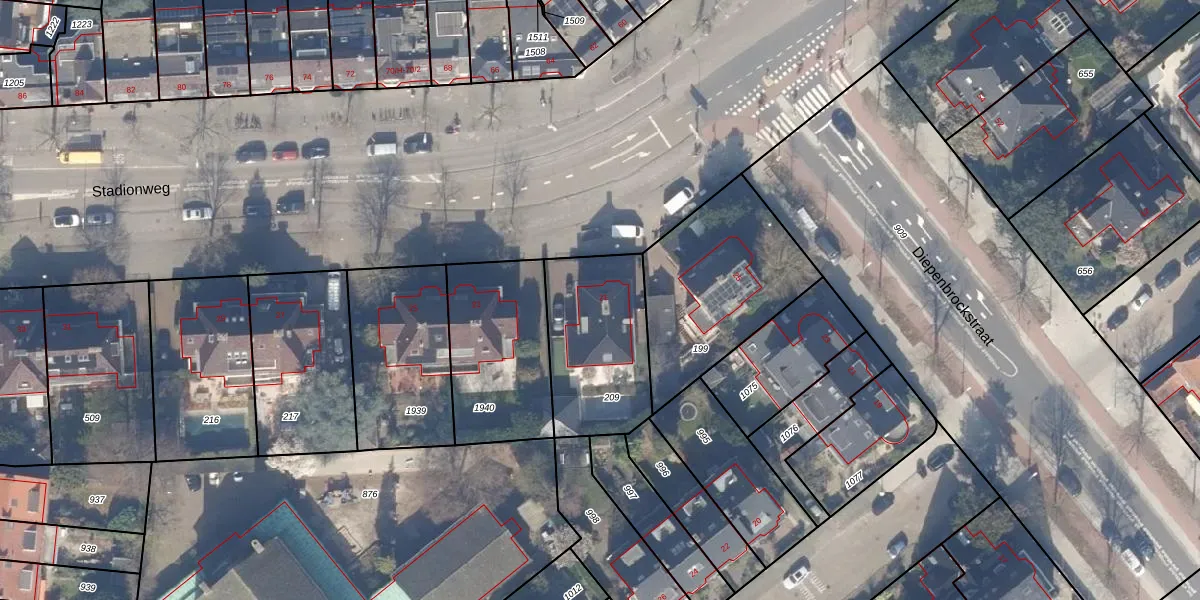 Gebruik de zoekbalk of klik op een perceel voor informatie over de adressen binnen dit perceel.