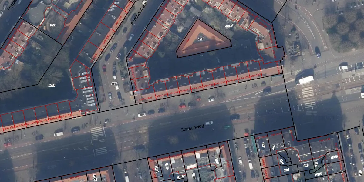 Stadionweg 242-1 is gelegen op kadastraal perceel ASD24AC870. Deze kadastrale aanduiding is uniek en wordt gebruikt door het Kadaster om eigendomsrechten en andere zakelijke rechten vast te leggen. Het perceel maakt onderdeel uit van de kadastrale gemeente Amsterdam.