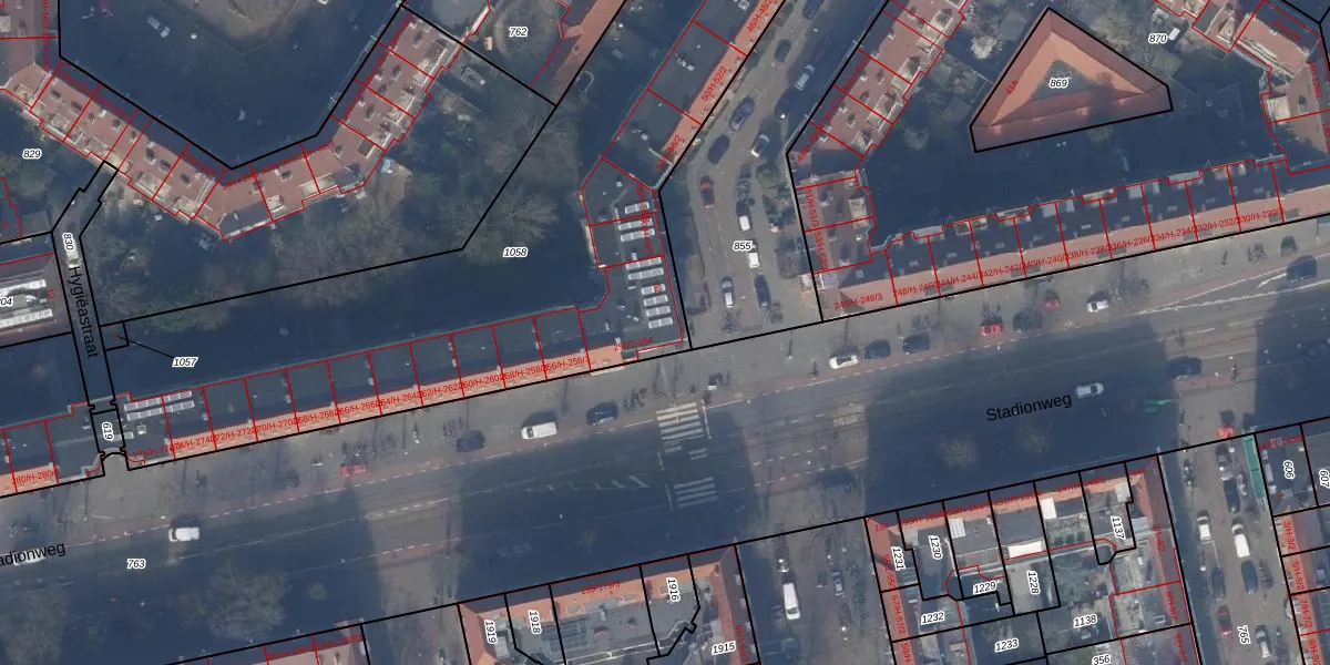 Het perceel waarop Stadionweg 250-2 staat heeft een oppervlakte van 3021 m². Dit is een zeer groot perceel. De perceeloppervlakte wordt geregistreerd door het Kadaster. Gedetailleerde informatie over de maten van dit perceel kunt u vinden in het rapport Kadastrale kaart met maatvoering van Stadionweg 250-2.