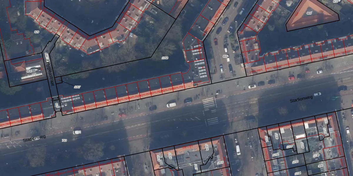 Stadionweg 256-3 is gelegen op kadastraal perceel ASD24AC1058. Deze kadastrale aanduiding is uniek en wordt gebruikt door het Kadaster om eigendomsrechten en andere zakelijke rechten vast te leggen. Het perceel maakt onderdeel uit van de kadastrale gemeente Amsterdam.