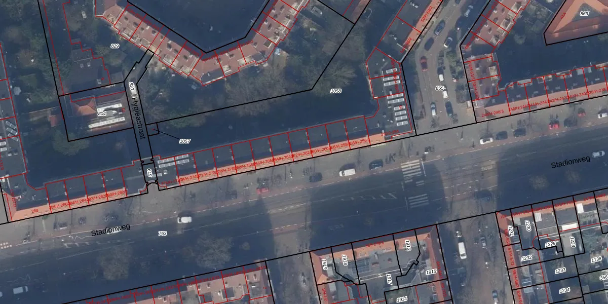 Het perceel waarop Stadionweg 262-2 staat heeft een oppervlakte van 3021 m². Dit is een zeer groot perceel. De perceeloppervlakte wordt geregistreerd door het Kadaster. Gedetailleerde informatie over de maten van dit perceel kunt u vinden in het rapport Kadastrale kaart met maatvoering van Stadionweg 262-2.