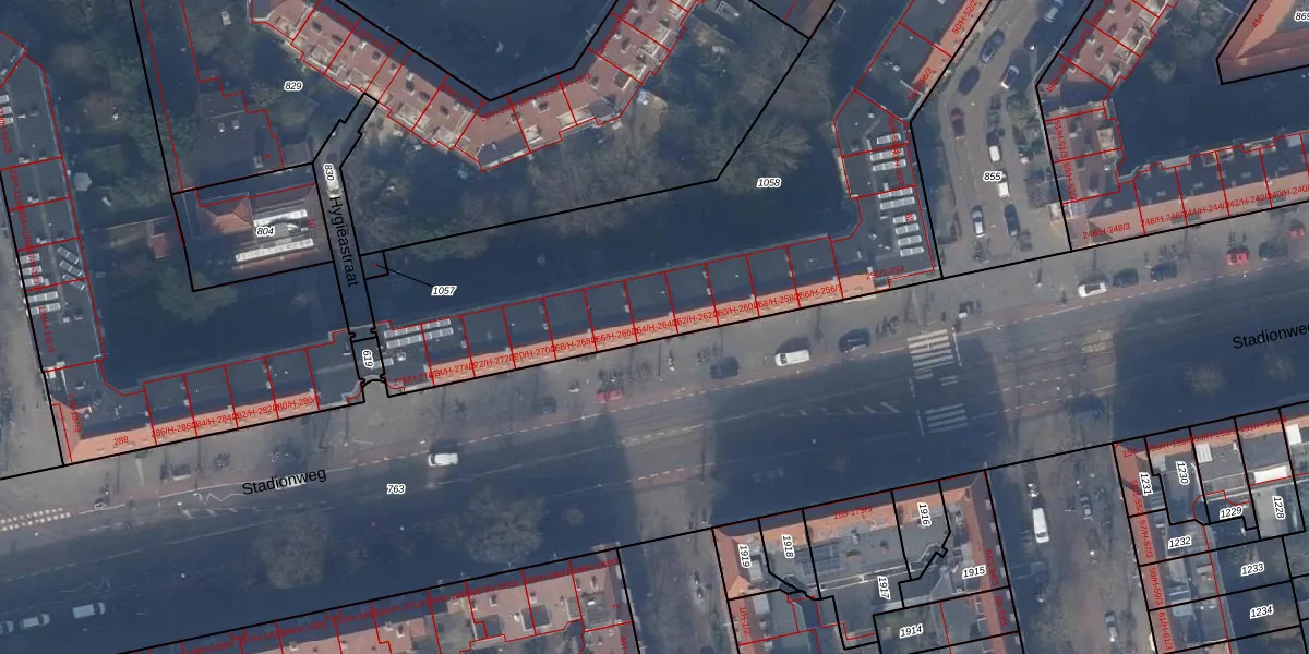 Het perceel waarop Stadionweg 264-2 staat heeft een oppervlakte van 3021 m². Dit is een zeer groot perceel. De perceeloppervlakte wordt geregistreerd door het Kadaster. Gedetailleerde informatie over de maten van dit perceel kunt u vinden in het rapport Kadastrale kaart met maatvoering van Stadionweg 264-2.