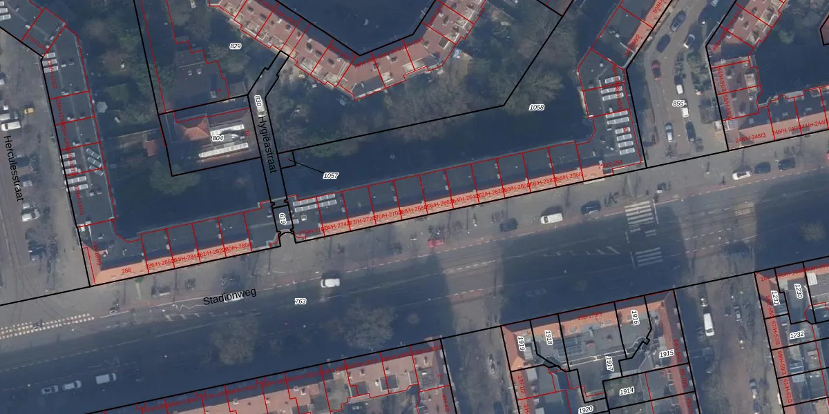 Het perceel waarop Stadionweg 268-H staat heeft een oppervlakte van 3021 m². Dit is een zeer groot perceel. De perceeloppervlakte wordt geregistreerd door het Kadaster. Gedetailleerde informatie over de maten van dit perceel kunt u vinden in het rapport Kadastrale kaart met maatvoering van Stadionweg 268-H.