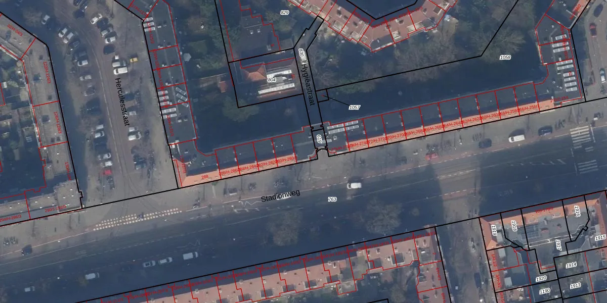 Het perceel waarop Stadionweg 278-2 staat heeft een oppervlakte van 4961 m². Dit is een zeer groot perceel. De perceeloppervlakte wordt geregistreerd door het Kadaster. Gedetailleerde informatie over de maten van dit perceel kunt u vinden in het rapport Kadastrale kaart met maatvoering van Stadionweg 278-2.