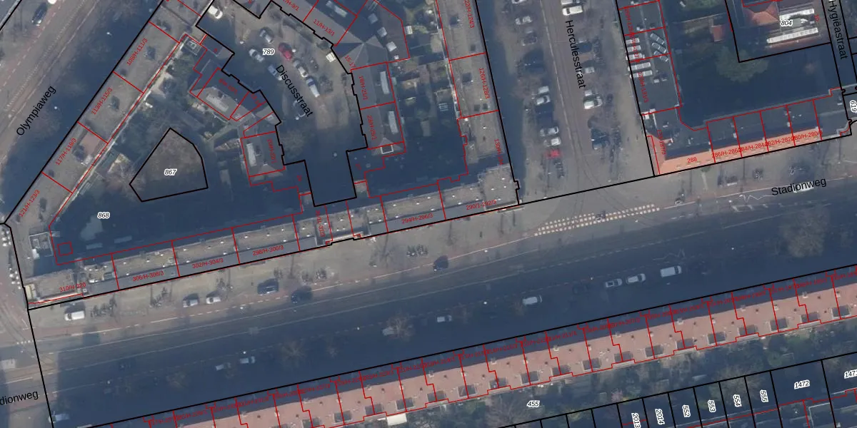 Stadionweg 294-2 is gelegen op kadastraal perceel ASD24AC868. Deze kadastrale aanduiding is uniek en wordt gebruikt door het Kadaster om eigendomsrechten en andere zakelijke rechten vast te leggen. Het perceel maakt onderdeel uit van de kadastrale gemeente Amsterdam.