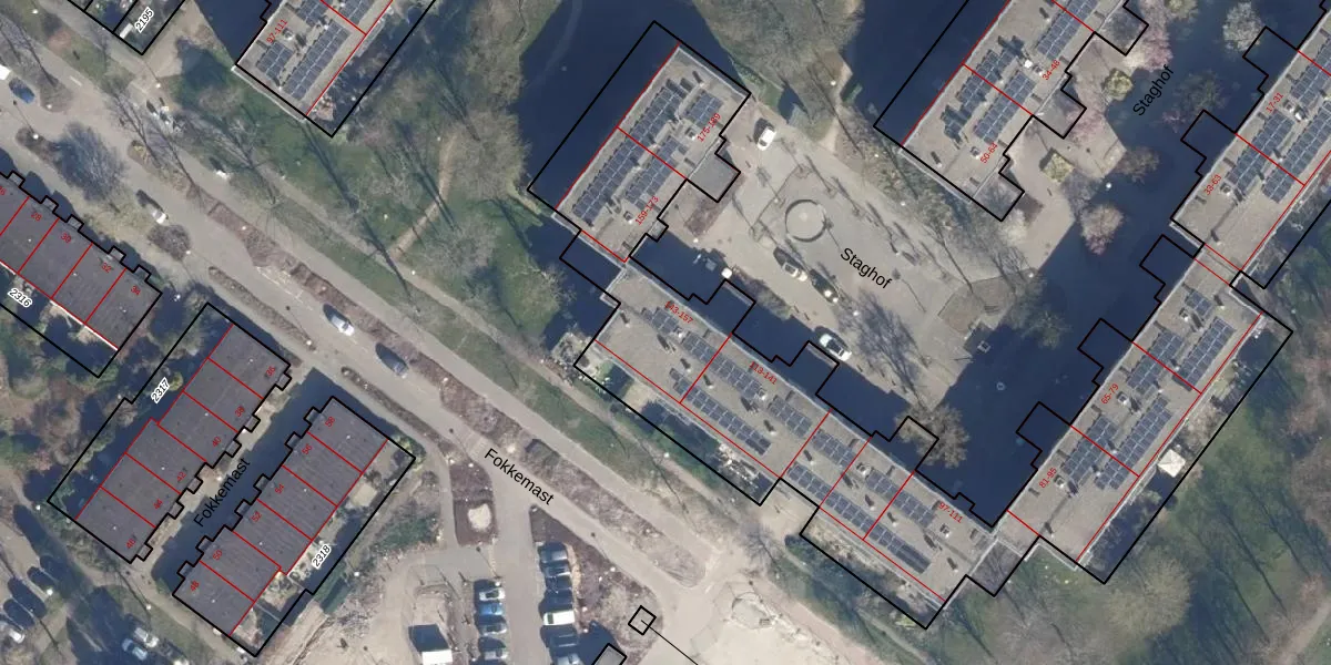 Het perceel waarop Staghof 151 staat heeft een oppervlakte van 5480 m². Dit is een zeer groot perceel. De perceeloppervlakte wordt geregistreerd door het Kadaster. Gedetailleerde informatie over de maten van dit perceel kunt u vinden in het rapport Kadastrale kaart met maatvoering van Staghof 151.