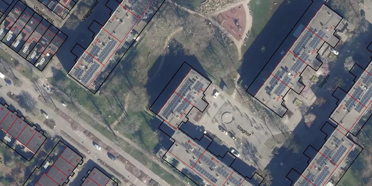 Staghof 177 is gelegen op kadastraal perceel ASD36AQ2430. Deze kadastrale aanduiding is uniek en wordt gebruikt door het Kadaster om eigendomsrechten en andere zakelijke rechten vast te leggen. Het perceel maakt onderdeel uit van de kadastrale gemeente Amsterdam.