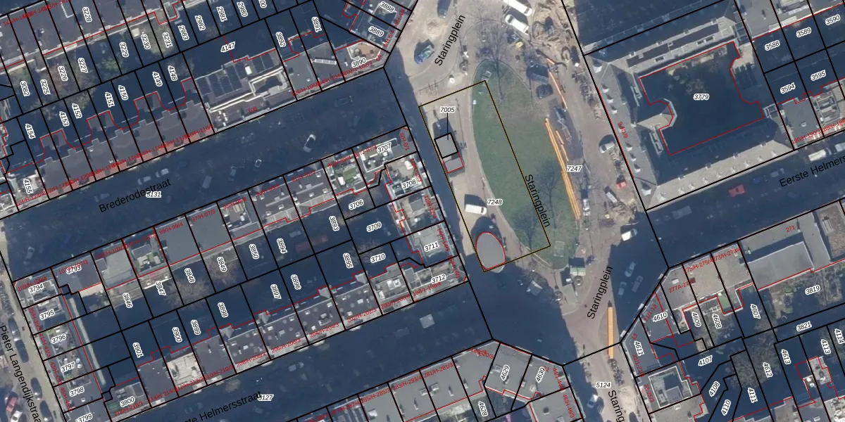 Staringplein 12-H is gelegen op kadastraal perceel ASD16T3709. Deze kadastrale aanduiding is uniek en wordt gebruikt door het Kadaster om eigendomsrechten en andere zakelijke rechten vast te leggen. Het perceel maakt onderdeel uit van de kadastrale gemeente Amsterdam.