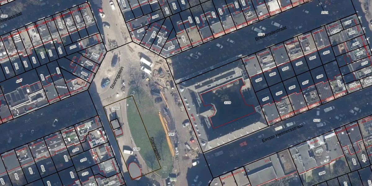 Staringplein 9-A-3 is gelegen op kadastraal perceel ASD16T3779. Deze kadastrale aanduiding is uniek en wordt gebruikt door het Kadaster om eigendomsrechten en andere zakelijke rechten vast te leggen. Het perceel maakt onderdeel uit van de kadastrale gemeente Amsterdam.