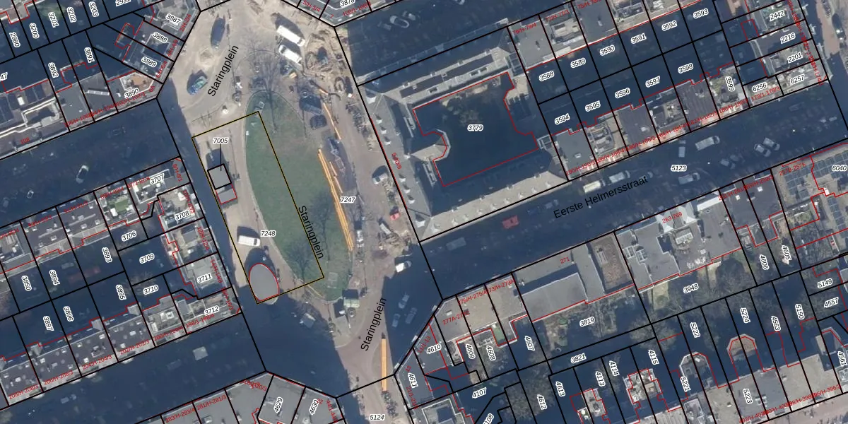 Staringplein 9-A-8 is gelegen op kadastraal perceel ASD16T3779. Deze kadastrale aanduiding is uniek en wordt gebruikt door het Kadaster om eigendomsrechten en andere zakelijke rechten vast te leggen. Het perceel maakt onderdeel uit van de kadastrale gemeente Amsterdam.
