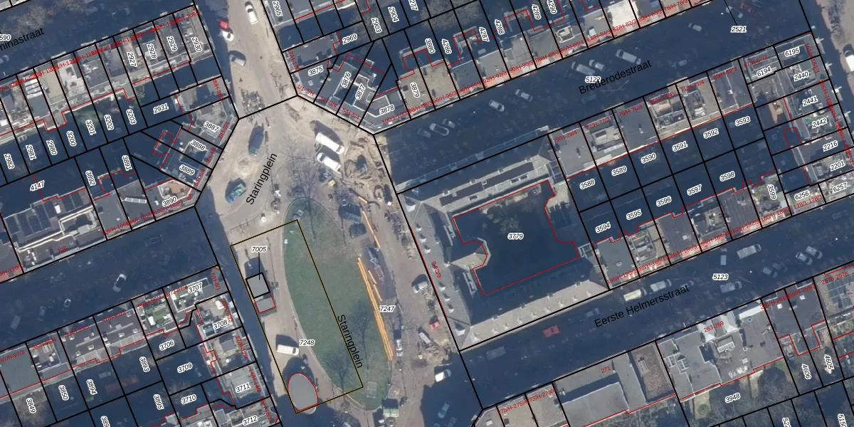 Staringplein 9-B-11 is gelegen op kadastraal perceel ASD16T3779. Deze kadastrale aanduiding is uniek en wordt gebruikt door het Kadaster om eigendomsrechten en andere zakelijke rechten vast te leggen. Het perceel maakt onderdeel uit van de kadastrale gemeente Amsterdam.