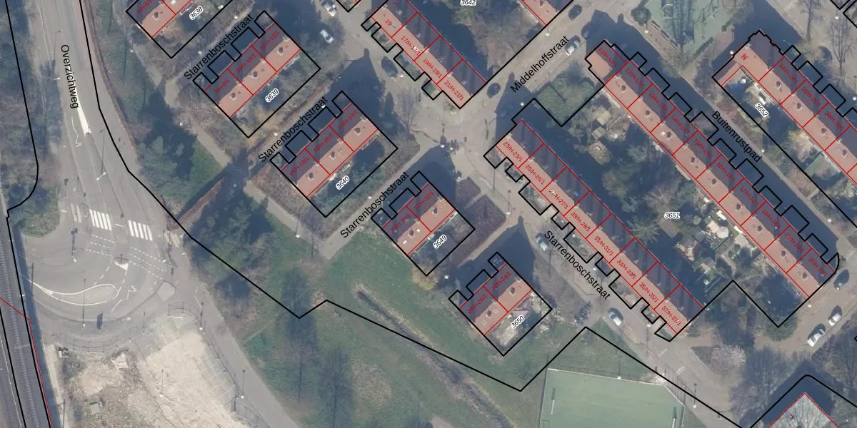 Starrenboschstraat 22-H is gelegen op kadastraal perceel WTG02A3649. Deze kadastrale aanduiding is uniek en wordt gebruikt door het Kadaster om eigendomsrechten en andere zakelijke rechten vast te leggen. Het perceel maakt onderdeel uit van de kadastrale gemeente Watergraafsmeer.