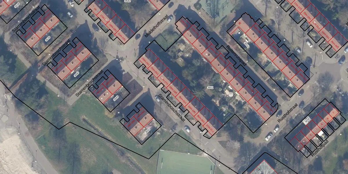 Het perceel waarop Starrenboschstraat 29-1 staat heeft een oppervlakte van 2694 m². Dit is een zeer groot perceel. De perceeloppervlakte wordt geregistreerd door het Kadaster. Gedetailleerde informatie over de maten van dit perceel kunt u vinden in het rapport Kadastrale kaart met maatvoering van Starrenboschstraat 29-1.