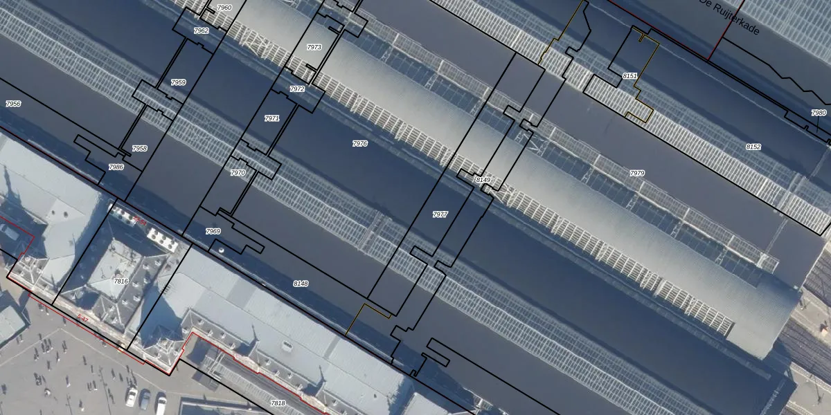 Het perceel waarop Stationsplein 31-E staat heeft een oppervlakte van 2605 m². Dit is een zeer groot perceel. De perceeloppervlakte wordt geregistreerd door het Kadaster. Gedetailleerde informatie over de maten van dit perceel kunt u vinden in het rapport Kadastrale kaart met maatvoering van Stationsplein 31-E.