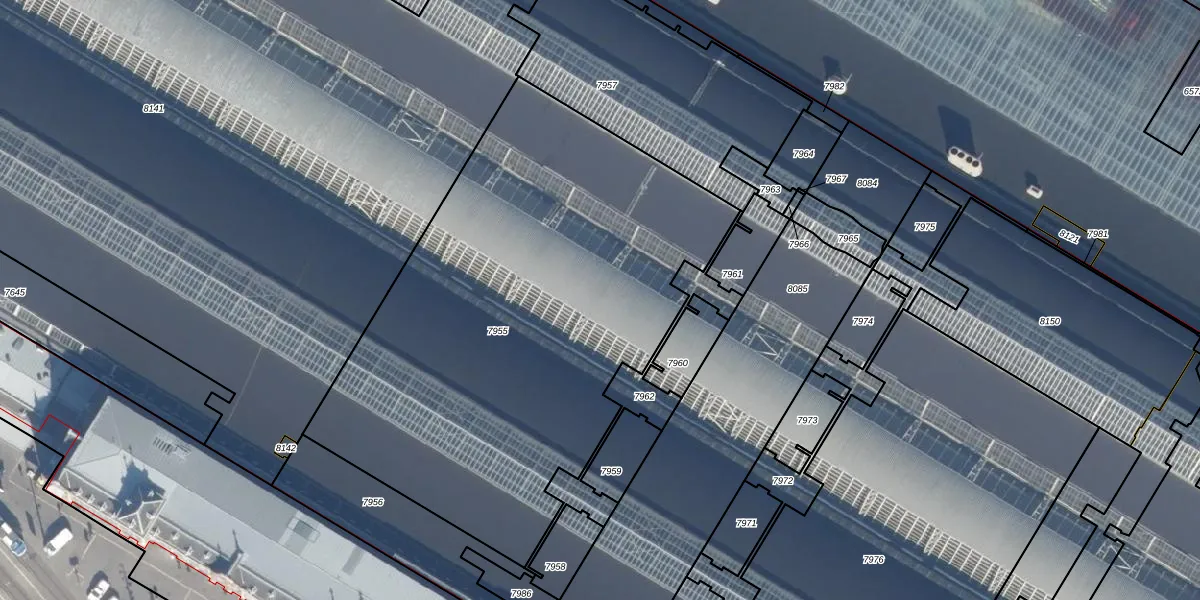 Het perceel waarop Stationsplein 39-G staat heeft een oppervlakte van 2955 m². Dit is een zeer groot perceel. De perceeloppervlakte wordt geregistreerd door het Kadaster. Gedetailleerde informatie over de maten van dit perceel kunt u vinden in het rapport Kadastrale kaart met maatvoering van Stationsplein 39-G.