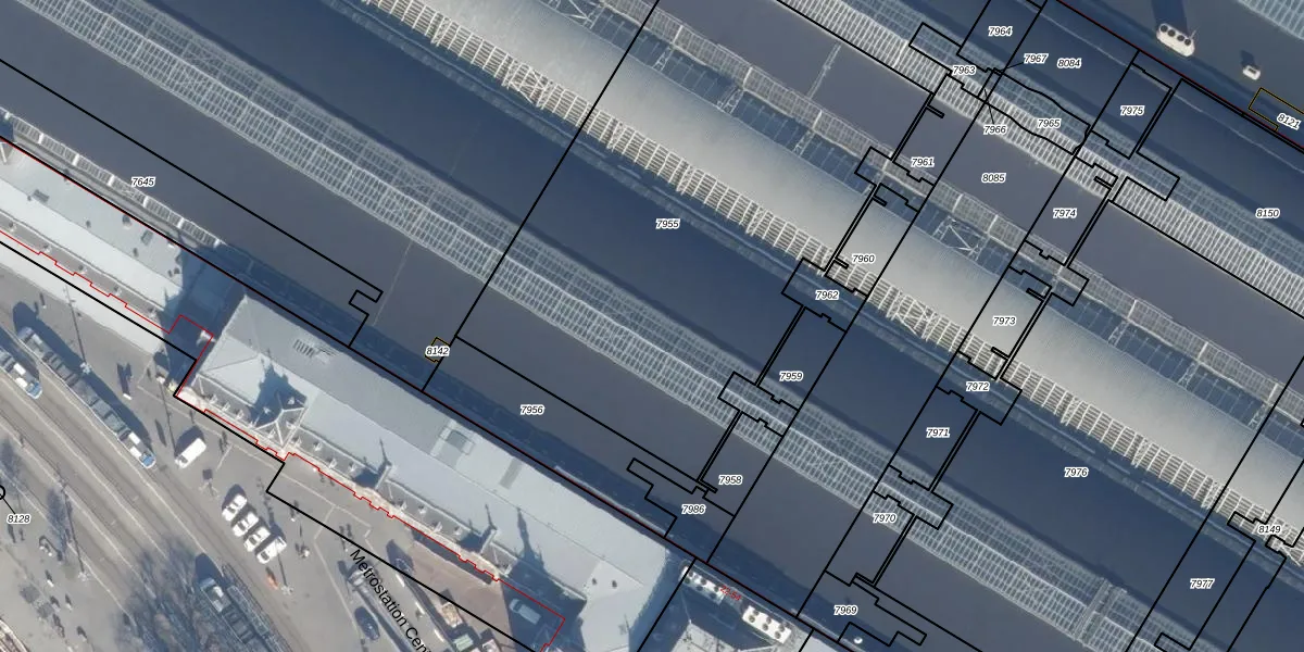 Het perceel waarop Stationsplein 41-D staat heeft een oppervlakte van 2955 m². Dit is een zeer groot perceel. De perceeloppervlakte wordt geregistreerd door het Kadaster. Gedetailleerde informatie over de maten van dit perceel kunt u vinden in het rapport Kadastrale kaart met maatvoering van Stationsplein 41-D.