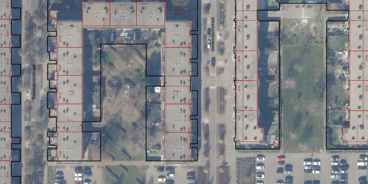 Het perceel waarop Stellendamstraat 37 staat heeft een oppervlakte van 5581 m². Dit is een zeer groot perceel. De perceeloppervlakte wordt geregistreerd door het Kadaster. Gedetailleerde informatie over de maten van dit perceel kunt u vinden in het rapport Kadastrale kaart met maatvoering van Stellendamstraat 37.