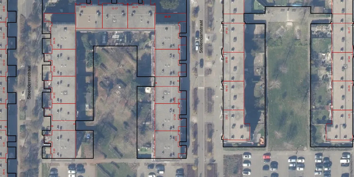 Het perceel waarop Stellendamstraat 43 staat heeft een oppervlakte van 5581 m². Dit is een zeer groot perceel. De perceeloppervlakte wordt geregistreerd door het Kadaster. Gedetailleerde informatie over de maten van dit perceel kunt u vinden in het rapport Kadastrale kaart met maatvoering van Stellendamstraat 43.