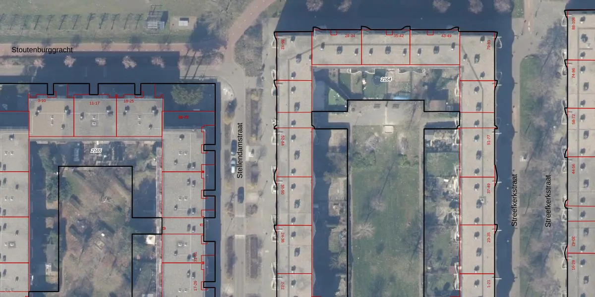 Stellendamstraat 60 is gelegen op kadastraal perceel WPK02L2164. Deze kadastrale aanduiding is uniek en wordt gebruikt door het Kadaster om eigendomsrechten en andere zakelijke rechten vast te leggen. Het perceel maakt onderdeel uit van de kadastrale gemeente Weesperkarspel.