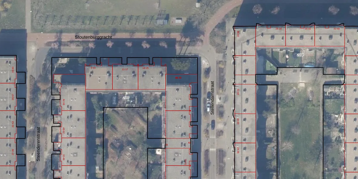 Het perceel waarop Stellendamstraat 67 staat heeft een oppervlakte van 5581 m². Dit is een zeer groot perceel. De perceeloppervlakte wordt geregistreerd door het Kadaster. Gedetailleerde informatie over de maten van dit perceel kunt u vinden in het rapport Kadastrale kaart met maatvoering van Stellendamstraat 67.