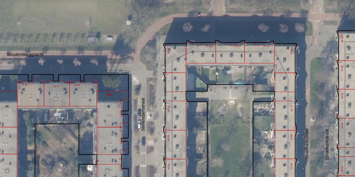 Stellendamstraat 72 is gelegen op kadastraal perceel WPK02L2164. Deze kadastrale aanduiding is uniek en wordt gebruikt door het Kadaster om eigendomsrechten en andere zakelijke rechten vast te leggen. Het perceel maakt onderdeel uit van de kadastrale gemeente Weesperkarspel.