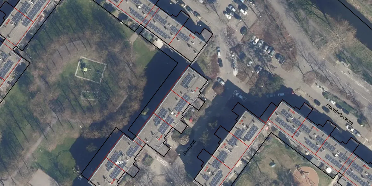 Stenghof 12 is gelegen op kadastraal perceel ASD36AQ2435. Deze kadastrale aanduiding is uniek en wordt gebruikt door het Kadaster om eigendomsrechten en andere zakelijke rechten vast te leggen. Het perceel maakt onderdeel uit van de kadastrale gemeente Amsterdam.