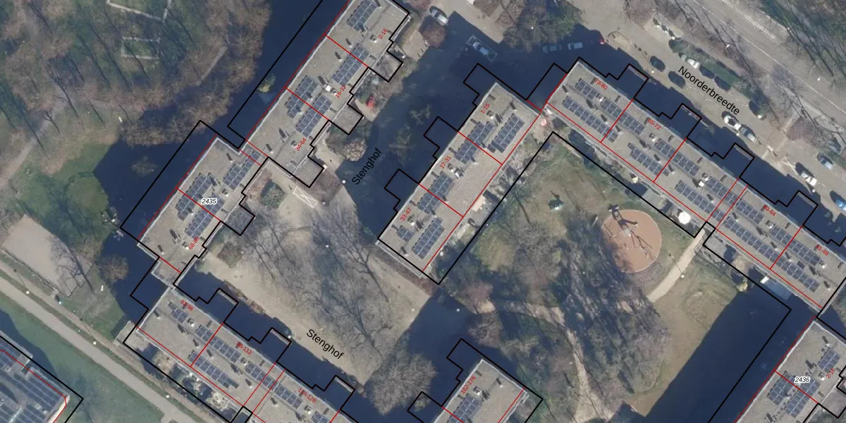 Het perceel waarop Stenghof 39 staat heeft een oppervlakte van 6325 m². Dit is een zeer groot perceel. De perceeloppervlakte wordt geregistreerd door het Kadaster. Gedetailleerde informatie over de maten van dit perceel kunt u vinden in het rapport Kadastrale kaart met maatvoering van Stenghof 39.