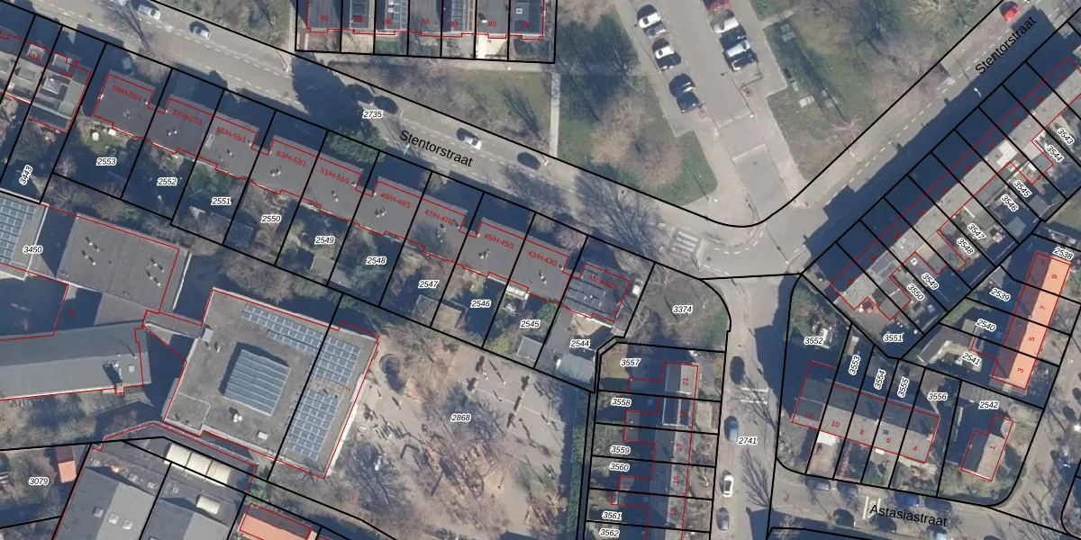 Stentorstraat 43-1 is gelegen op kadastraal perceel ASD35AP2545. Deze kadastrale aanduiding is uniek en wordt gebruikt door het Kadaster om eigendomsrechten en andere zakelijke rechten vast te leggen. Het perceel maakt onderdeel uit van de kadastrale gemeente Amsterdam.