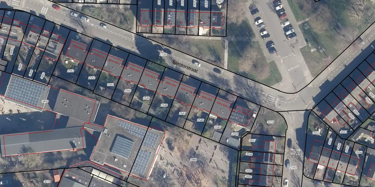 Het perceel waarop Stentorstraat 47-H staat heeft een oppervlakte van 279 m². Dit is een middelgroot perceel. De perceeloppervlakte wordt geregistreerd door het Kadaster. Gedetailleerde informatie over de maten van dit perceel kunt u vinden in het rapport Kadastrale kaart met maatvoering van Stentorstraat 47-H.