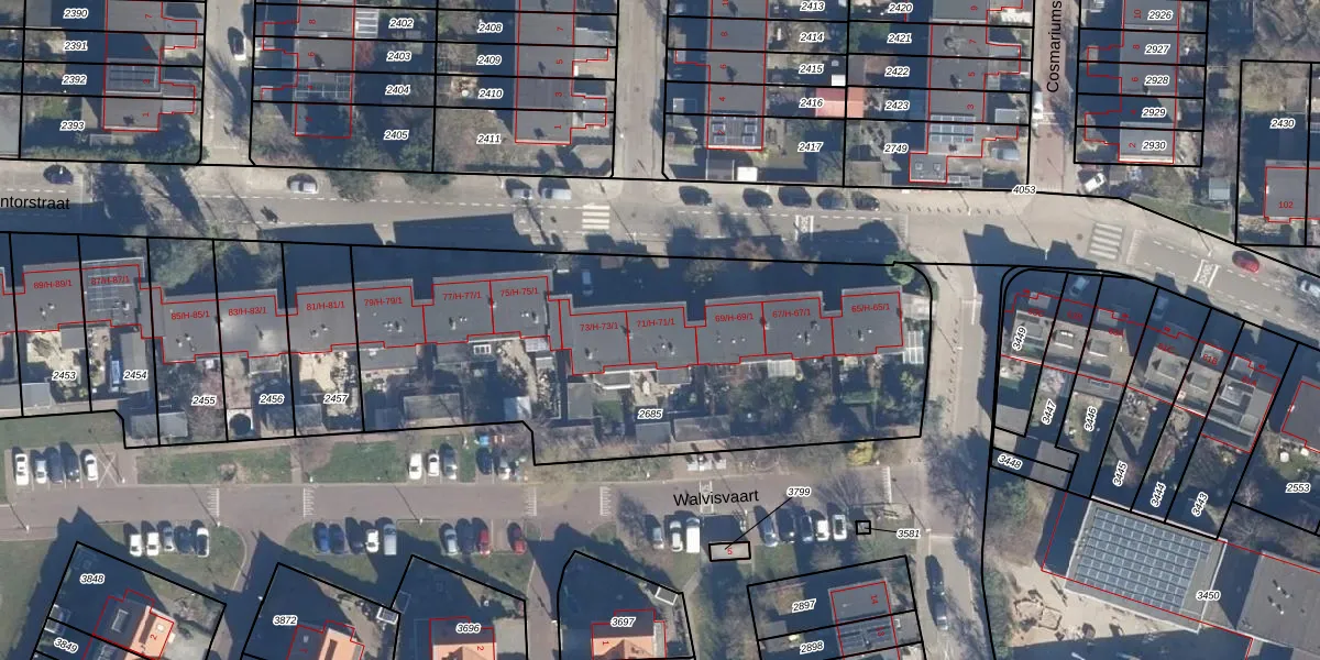 Het perceel waarop Stentorstraat 71-1 staat heeft een oppervlakte van 2435 m². Dit is een zeer groot perceel. De perceeloppervlakte wordt geregistreerd door het Kadaster. Gedetailleerde informatie over de maten van dit perceel kunt u vinden in het rapport Kadastrale kaart met maatvoering van Stentorstraat 71-1.