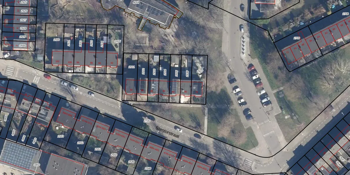 Stentorstraat 82 is gelegen op kadastraal perceel ASD35AP2935. Deze kadastrale aanduiding is uniek en wordt gebruikt door het Kadaster om eigendomsrechten en andere zakelijke rechten vast te leggen. Het perceel maakt onderdeel uit van de kadastrale gemeente Amsterdam.
