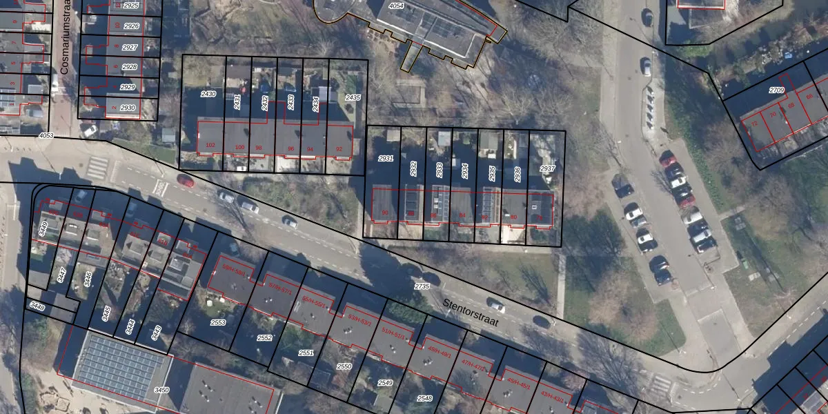 Stentorstraat 88 is gelegen op kadastraal perceel ASD35AP2932. Deze kadastrale aanduiding is uniek en wordt gebruikt door het Kadaster om eigendomsrechten en andere zakelijke rechten vast te leggen. Het perceel maakt onderdeel uit van de kadastrale gemeente Amsterdam.
