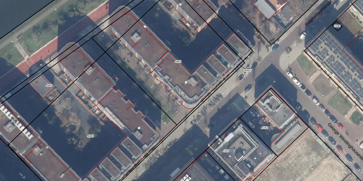 Het perceel waarop Stephensonstraat 10-A staat heeft een oppervlakte van 2885 m². Dit is een zeer groot perceel. De perceeloppervlakte wordt geregistreerd door het Kadaster. Gedetailleerde informatie over de maten van dit perceel kunt u vinden in het rapport Kadastrale kaart met maatvoering van Stephensonstraat 10-A.
