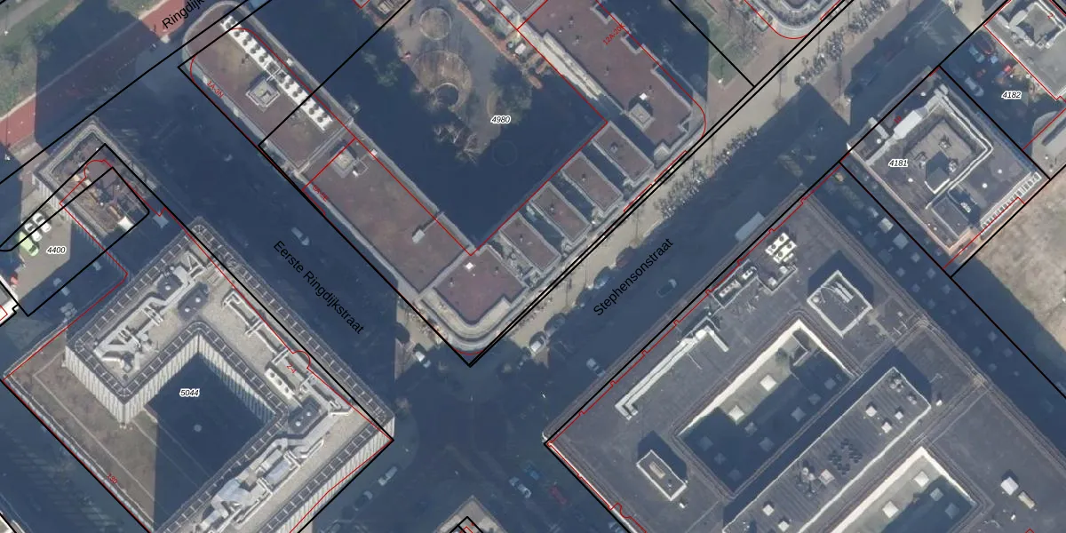 Het perceel waarop Stephensonstraat 16-L staat heeft een oppervlakte van 4235 m². Dit is een zeer groot perceel. De perceeloppervlakte wordt geregistreerd door het Kadaster. Gedetailleerde informatie over de maten van dit perceel kunt u vinden in het rapport Kadastrale kaart met maatvoering van Stephensonstraat 16-L.