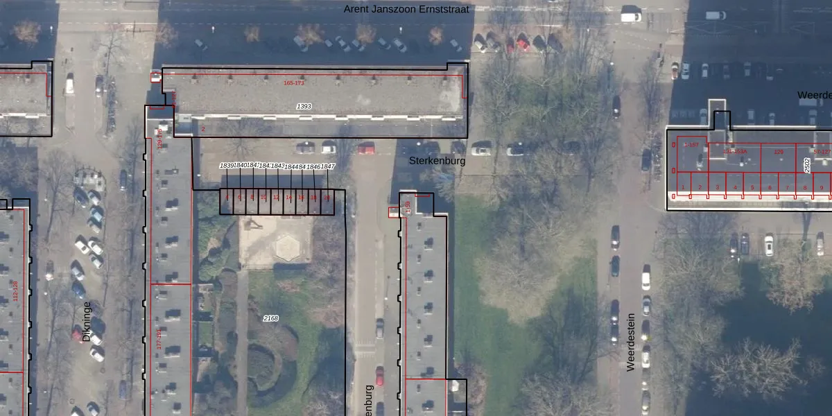 Het perceel waarop Sterkenburg 45 staat heeft een oppervlakte van 1122 m². Dit is een zeer groot perceel. De perceeloppervlakte wordt geregistreerd door het Kadaster. Gedetailleerde informatie over de maten van dit perceel kunt u vinden in het rapport Kadastrale kaart met maatvoering van Sterkenburg 45.