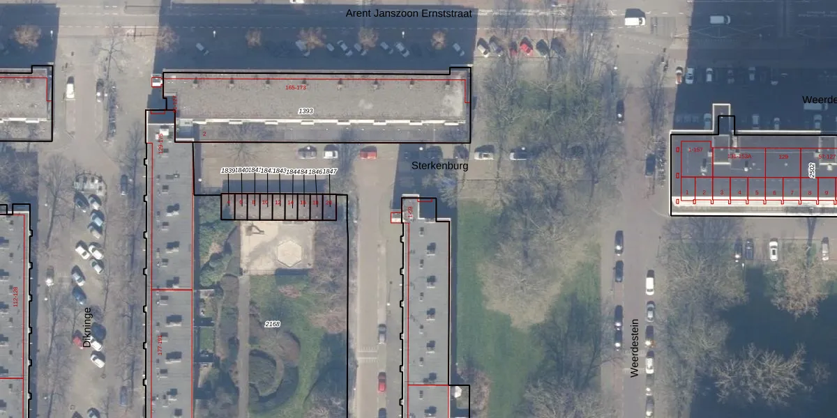 Het perceel waarop Sterkenburg 53 staat heeft een oppervlakte van 1122 m². Dit is een zeer groot perceel. De perceeloppervlakte wordt geregistreerd door het Kadaster. Gedetailleerde informatie over de maten van dit perceel kunt u vinden in het rapport Kadastrale kaart met maatvoering van Sterkenburg 53.