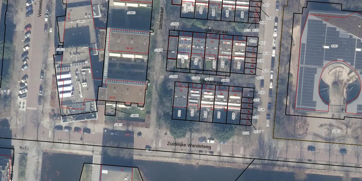 Gebruik de zoekbalk of klik op een perceel voor informatie over de adressen binnen dit perceel.