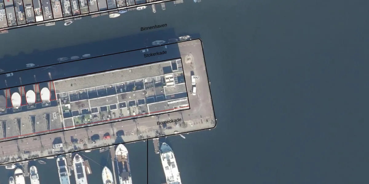 Het perceel waarop Stokerkade 132 staat heeft een oppervlakte van 3570 m². Dit is een zeer groot perceel. De perceeloppervlakte wordt geregistreerd door het Kadaster. Gedetailleerde informatie over de maten van dit perceel kunt u vinden in het rapport Kadastrale kaart met maatvoering van Stokerkade 132.