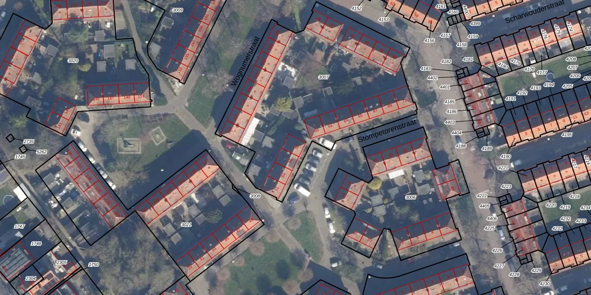 Het perceel waarop Stompetorenstraat 57 staat heeft een oppervlakte van 2449 m². Dit is een zeer groot perceel. De perceeloppervlakte wordt geregistreerd door het Kadaster. Gedetailleerde informatie over de maten van dit perceel kunt u vinden in het rapport Kadastrale kaart met maatvoering van Stompetorenstraat 57.